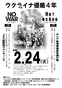 2026年 2月24日(火) 12:00~(40分間) 場所:ロシア領事館 18:00~10:00 JR大阪駅東南側バスターミナル(人民広場) 呼びかけ:しないさせない戦争協力関西ネットワーク/ロシア軍の即時停戦・撤退を求める高槻市民グループ/戦争法廃止!豊中市民アクション/とめよう改憲!おおさかネットワーク/木村真事務所 賛同団体:おおさか総がかり行動実行委員会 |